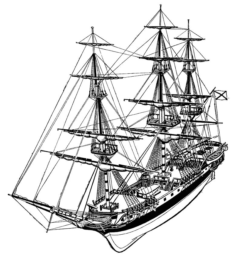 ПЕРВЕНЕЦ ЧЕРНОМОРСКИХ ВЕРФЕЙИмя городу, который в 1789 году вместе с корабельной верфью был заложен на слиянии Буга и Ингула, дал князь Потемкин-Таврический. Он назвал его «Николаевым» в честь взятия Очакова — события, которое произошло в день св. Николая. И первый военный корабль — фрегат «Святой Николай», — который построили в этом городе, также назвали в память этого дня. Судно заложили на стапелях николаевского Адмиралтейства 6 января 1790 года и спустили на воду 25 августа того же года. Это был фрегат длиной 46,75 м, шириной 12,96 м, вооруженный 44 пушками. Строил его корабельный подмастерье Александр Петрович Соколов. Несколько лет назад старейший моделист города Николаева С. Ф. Вовчарук разыскал в архивах своего города часть строительных чертежей этого корабля и некоторые ведомости по его постройке. В одной из них говорится, что на строительство фрегата привезли 4856 м3 дуба, 924 м3 лиственницы, 326 м3 сосновых кряжей, 1179 сосновых бревен, 8922 сосновые доски и 16 еловых бревен — всего на сумму 94 тысячи 273 рубля 71 копейку. В другой сообщается, что для спуска со стапеля «Св. Николая» израсходовано 70 ведер подсолнечного масла, 60 пудов топленого сала и 20 кусков горячей серы... История «Св. Николая» тесно связана с героическим прошлым нашего Черноморского флота. Фрегат входил в состав эскадры адмирала Ушакова, принимал участие во многих походах и морских сражениях. Не прошло и года после спуска фрегата на воду, как он под командованием капитана второго ранга Львова в составе эскадры Ушакова уже участвовал в знаменитом сражении при Калиакрии. Выйдя из Севастополя с 16 кораблями, 2 фрегатами (включая «Св. Николай»), 2 бомбардирскими и несколькими мелкими судами, Ушаков 31 июля 1791 года застал турецкий флот стоявшим на якоре у черноморского мыса Калиакрия под прикрытием береговых батарей. Хотя наша эскадра по числу кораблей была в два раза меньше турецкой, Ушаков стремительно атаковал неприятеля, пройдя между берегом и крайними турецкими кораблями. Несмотря на выстрелы береговых батарей, русские корабли начали огибать неприятельскую линию. Турки были так озадачены этим неожиданным и смелым маневром, что начали в панике рубить свои якорные канаты, чтобы вступить под паруса. При довольно сильном ветре турецкие корабли наваливались друг на друга, сталкивались, ломая рангоут. Едва они сумели перестроиться в боевой порядок, как корабли Ушакова, сомкнув дистанцию, вновь устремились в атаку. Корабль Ушакова «Рождество Христово», подойдя на расстояние полукабельтова (90 с небольшим метров) к флагманскому судну адмирала Саид-Али, сбил у него фор-стеньгу и грот-марса-рей. Жестокий бой, продолжавшийся более трех часов, окончился полным поражением турок. Неприятель бежал в беспорядке к Константинополю. Многие турецкие корабли потеряли мачты и стеньги, а флагманский корабль капудана-паши Гуссейна и несколько других пошли ко дну от пробоин. Только на одном корабле адмирала Сайда-Али было около 500 человек убитых и раненых. Славная победа при Калиакрии стоила русскому флоту всего 17 человек убитых и 27 раненых, а повреждения, полученные нашими кораблями, оказались настолько незначительными, что были исправлены за три дня. За храбрость, проявленную в этом сражении, командир фрегата «Св. Николай» был награжден золотой шпагой. В течение следующего десятилетия фрегат уч