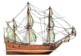 В начале XVII века на севере Европы появился новый тип судна — пинасс, несколько напоминавший флейт, но значительно отличавшийся от него менее вогнутыми шпангоутами и плоской кормой. Передняя часть корабля заканчивалась почти прямоугольной поперечной переборкой, простирающейся по высоте от палубы до полубака. Такая форма передней части судна просуществовала до начала XVIII века. Пинасс был длиной до 44 м, имел три мачты и мощный бушприт. На грот и фок-мачтах поднимали прямые паруса, на бизань-мачте — бизань и над нею крюйсель, а на бушприте — блинд и бом-блинд. Водоизмещение пинассов 150—800 т. Предназначались они в основном для торговых целей. Серия: История Корабля